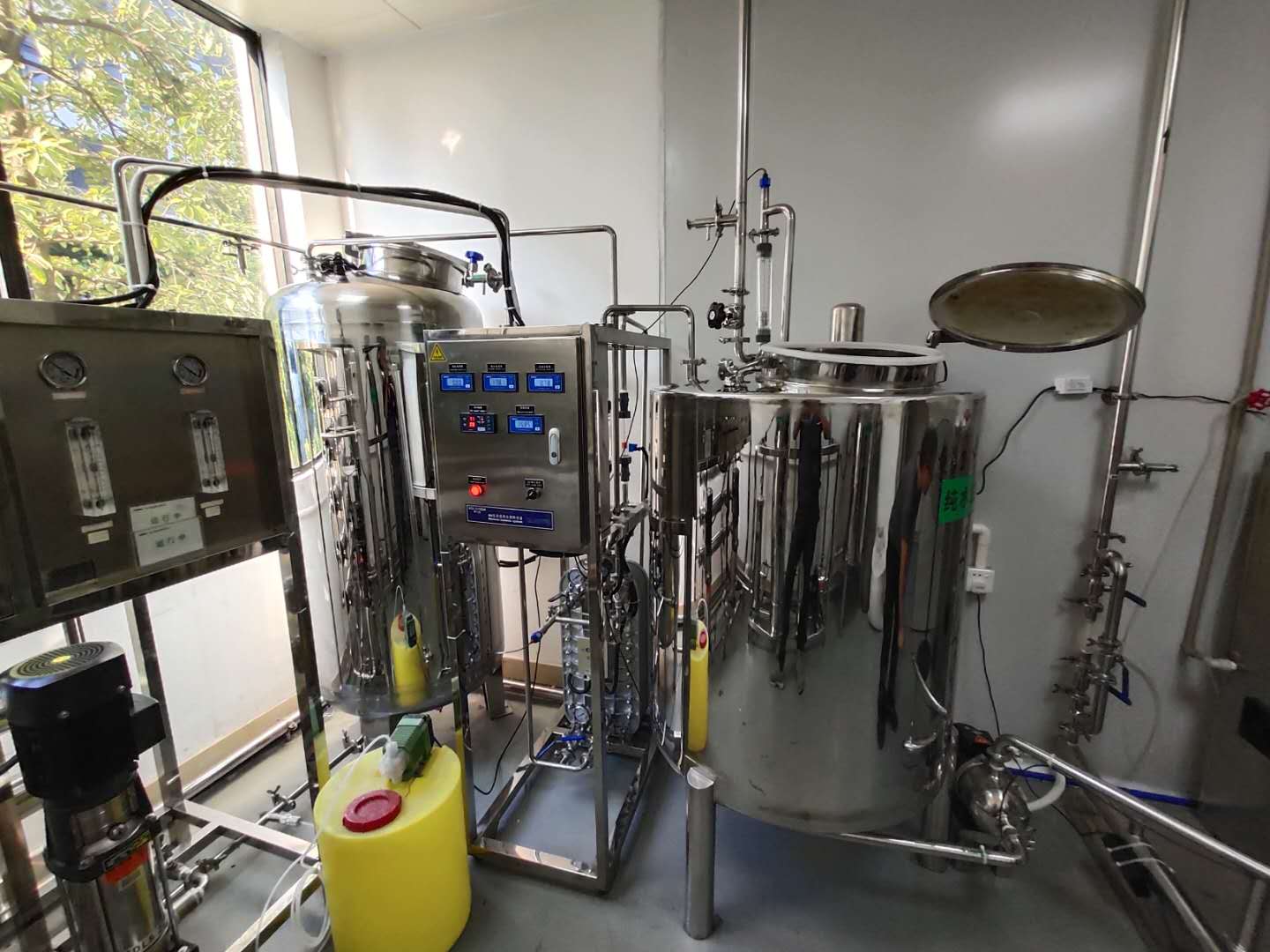 医药用水设备适用于制药用水、化工工艺用水、中压锅炉补水、生物化工工艺用水、医疗卫生用水、电子行业用纯水、机械行业清洗冷却用水、冶炼用水、民用纯净水。主要配置有原水箱、原水泵、机械过滤器、活性碳过滤器、精密过滤器、加药装置、一级反渗透主机泵、一级反渗透主机、清洗装置、二级加药装置、二级反渗透主机泵、二级反渗透主机、淡水箱、淡水泵、纯水箱、纯水泵、紫外线杀菌器等。