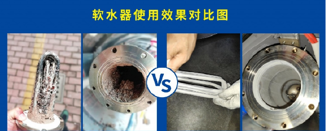 可以看到,没有配置软水器的熨烫机炉体及加热管泥沙堆积和结垢现象非常严重。而配置了软水器的熨烫设备,在半年后保养设备时炉胆内部和加热管的状况依然非常良好。