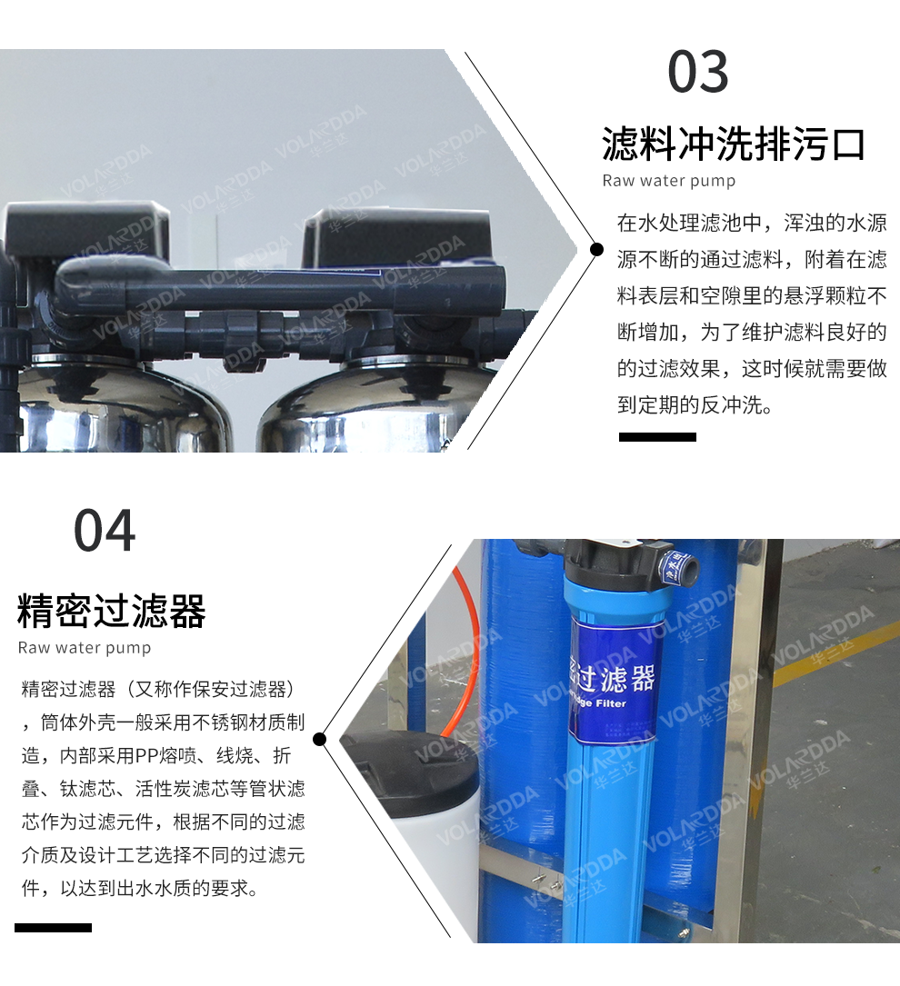 利用石英砂滤料的截留、滤除作用,去除大粒径的杂质颗粒、浓度胶体和悬浮物是一种常见方式,具有低成本、操作维护及管理方便等特点。过滤精度高,有效去除胶体颗粒及高分子有机物;常温操作、耐酸碱、氧化,配置完善检测仪表,实现自动和手动双重控制。