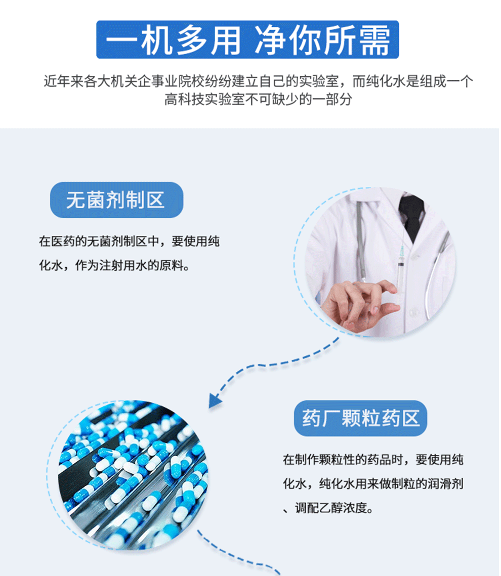 即电导率或电阻率要达到多少,产出的纯净水有什么用途,就用在什么产业。