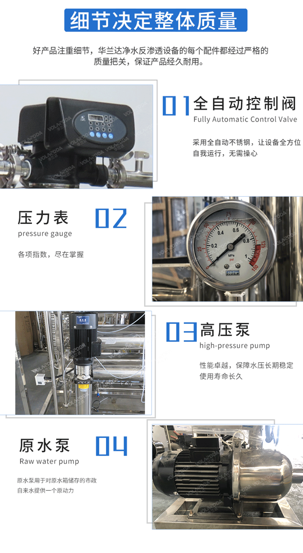 根据自身行业需要,选择配置,指主要部分采用不锈钢还是玻璃钢,水泵要国产的还是进口的,反渗