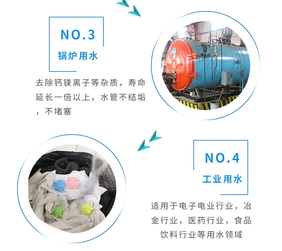 去除水中的硬度杂质Ca、Mg等离子,降低水质硬度实现软化,烧水没有水垢,适用于占用水总量95%的生活用水,对洗浴、美容、洗涤衣物、热水器及壁挂炉等家电的日常维护有好处。